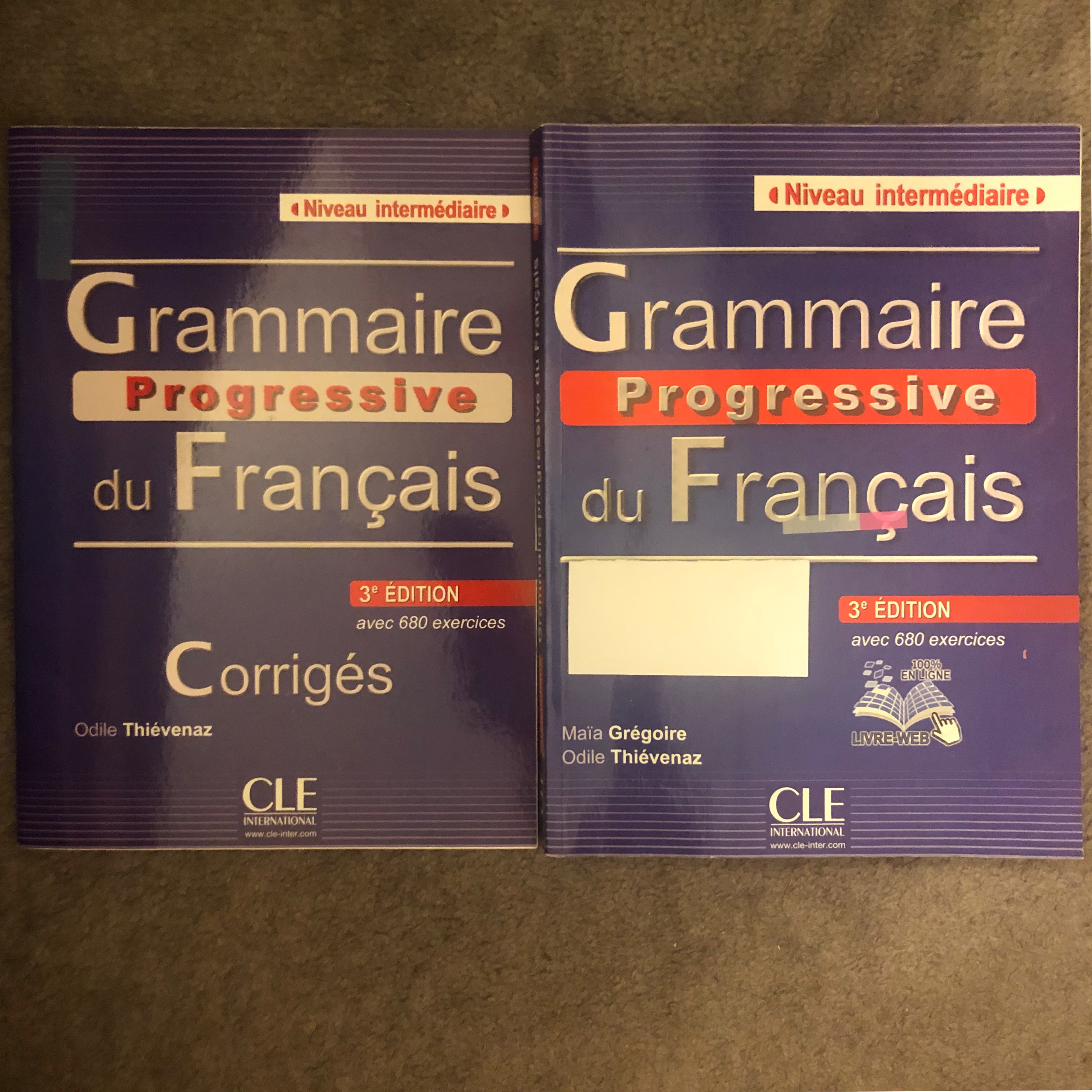 먼저, 프랑스어를 공부하는 사람들 사이에서 파란책으로 통하는, 또 다른 별명으로는 프랑스어 문법(불문법)계의 수학의 정석으로 불리는, CLE출판사의 Grammaire progressive du Français를 소개한다. 이 책은 정말 공부하면서 오래오래 쓸 수 있는 책이다. Delf A2, Delf B1, Delf B2 그리고 심지어 Dalf를 준비하는 사람들에게도 유용하다. 가진 프랑스어를 공부하는 책중에 가장 많이 본 책이다. 그래서 그런지 가장 낡았다. 똑같은 책을 2권 샀다. 수십 번을 봐서 한 권은 너무 낡아서 버리고 이게 2번째 책이다. 생각해보면 각 레벨을 올라갈 때마다 적어도 2-3번씩 정독했던 것 같다. 처음에는 정말 어려웠고 이해도 안 갔지만, 한번 한번 보는 횟수가 늘어날 때마다, 한 권을 다 공부하는 시간이 줄어들었다. 지금은 가끔 헷갈릴 때, 종종 까먹었을 때, 내가 기억하는 내용을 확인하는 용도로 쓰고 있다. 사실 이 책 한 권이면 프랑스어의 어지간한 문법은 다 배울 수 있다.